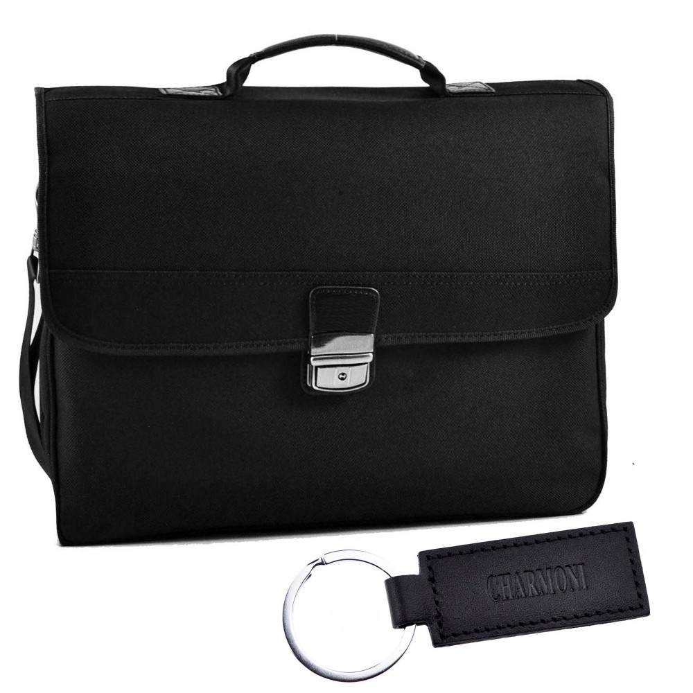 serviette cartable mallette 3 soufflets en nylon garni cuir de vachette neuf FL3