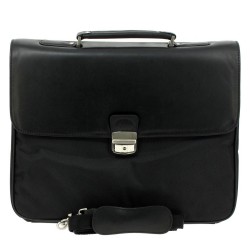 Serviette cartable mallette 2 soufflets en nylon garni cuir de vachette neuf FL2