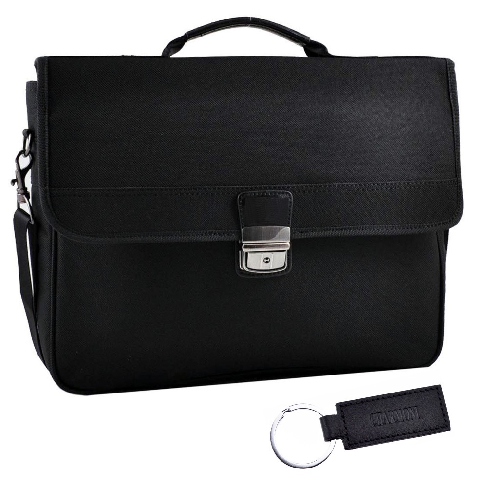 Serviette cartable mallette 2 soufflets en nylon garni cuir de vachette neuf FL1