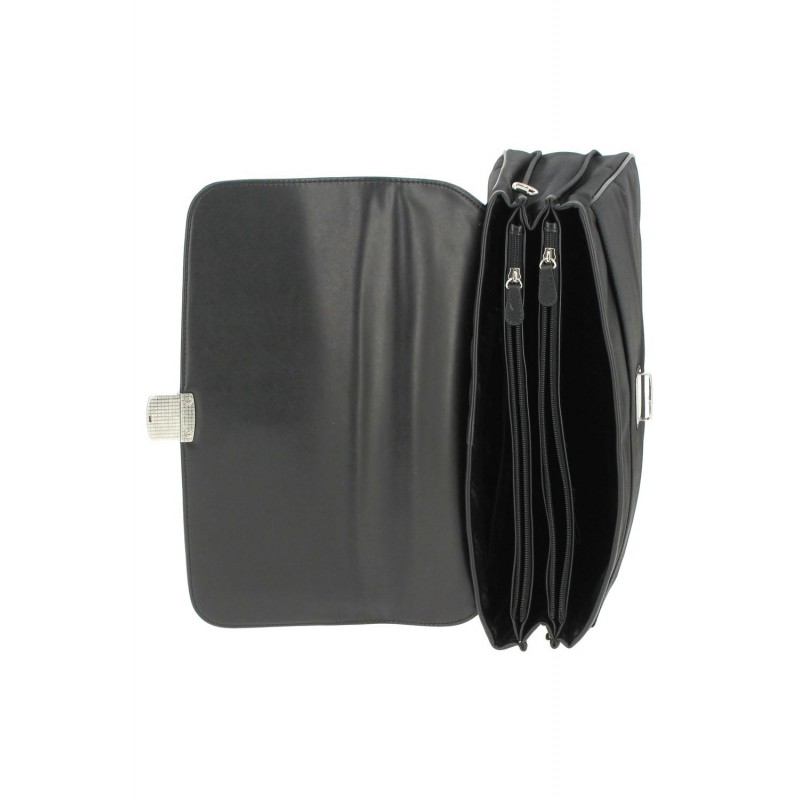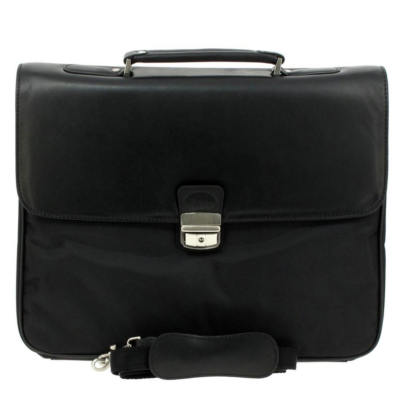 serviette cartable mallette 3 soufflets en nylon garni cuir de vachette neuf Aboncourt