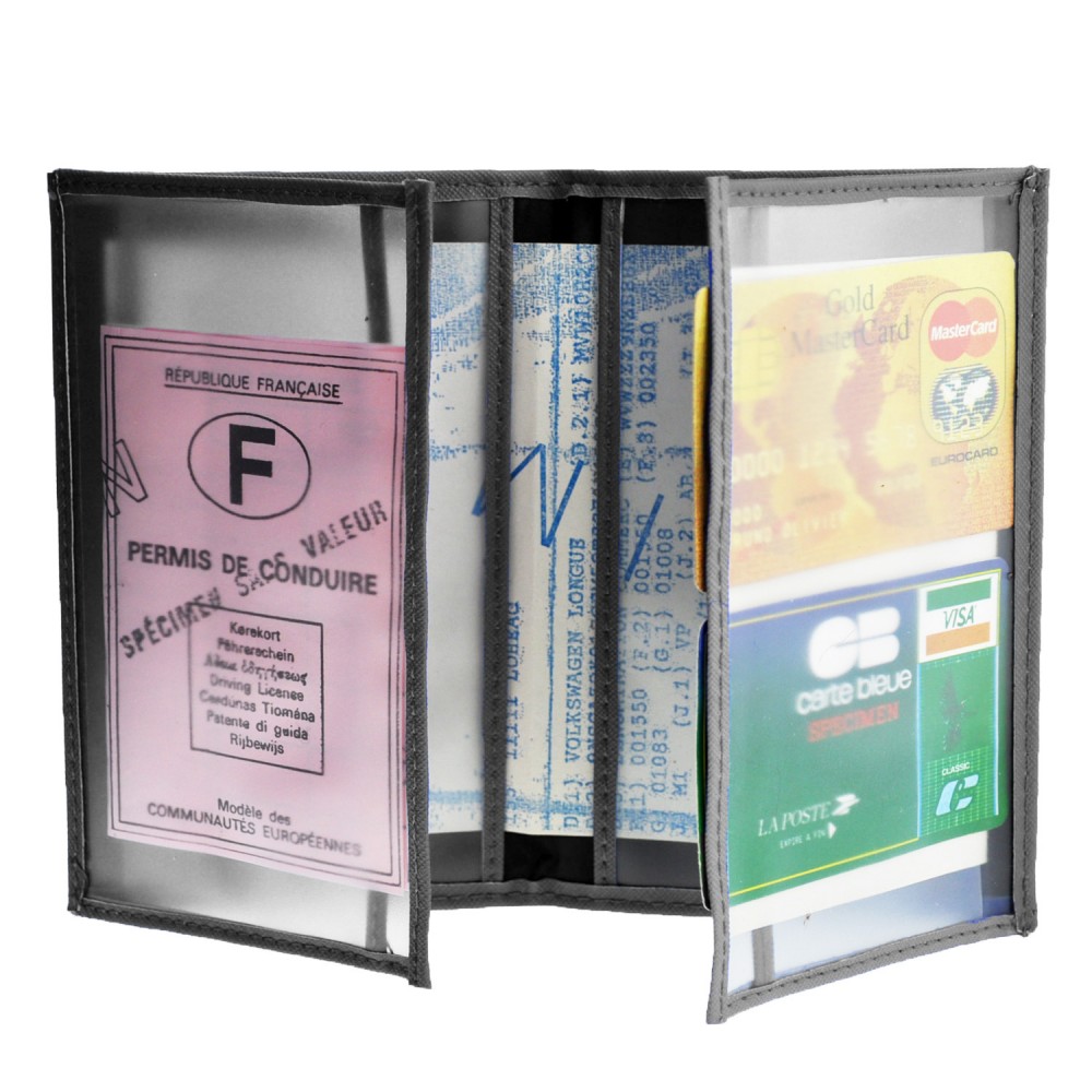 Charmoni® porte papier de voiture permis de conduire grise carte d'identité en aspect cuir saffiano ou cuir véritable neuf Tyson